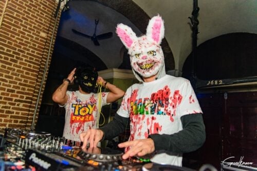 Stadscafé de Boterwaag is met de uitbundige aankleding en de over-the-top outfits van het personeel dit traditiegetrouw één van de kleurrijkste Halloween feesten van de stad.